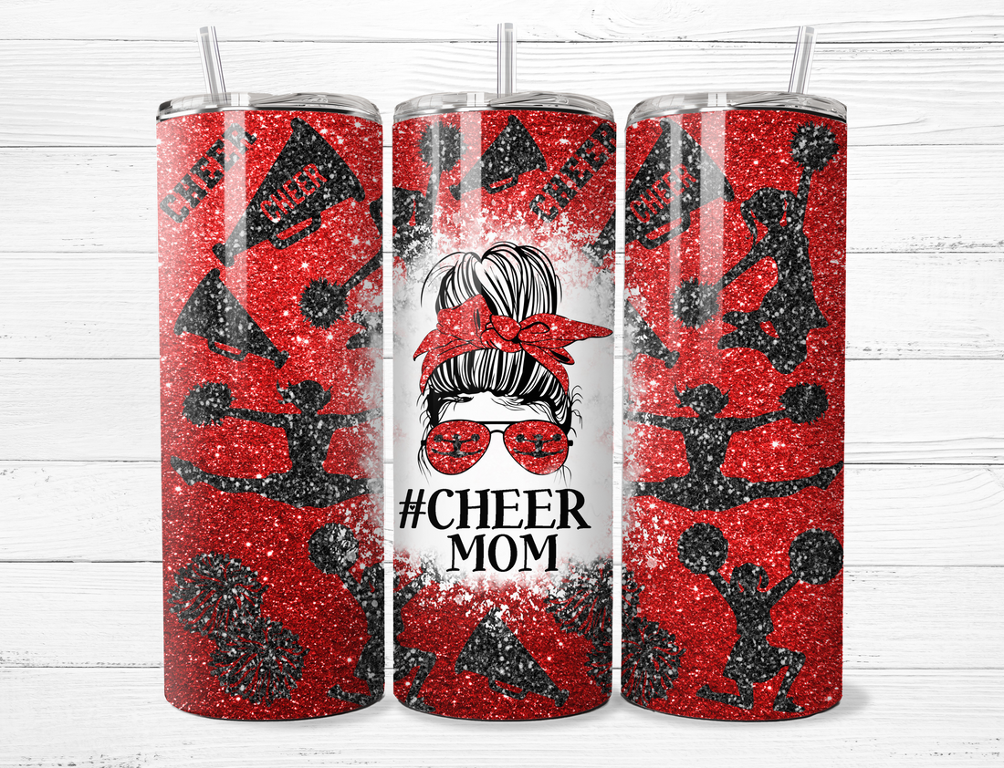 #Cheermom, Black and Red, Messy BunTumbler